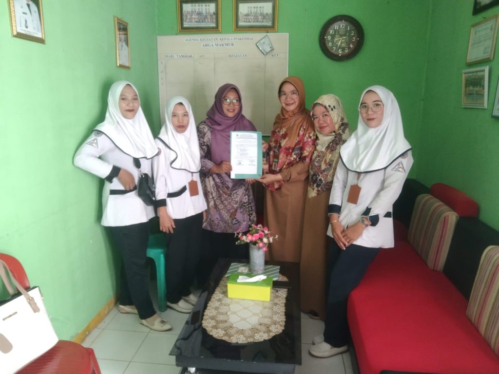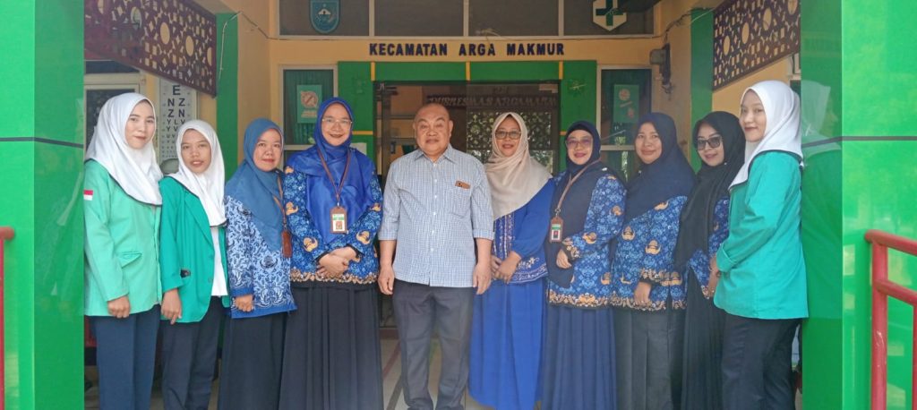 Serah Terima Mahasiswa Program Studi Kesehatan Masyarakat magang di Puskesmas Perumnas, Puskesmas Arga Makmur, Puskesmas Kemumu oleh Dekan Fakultas Ilmu Kesehatan (Ikhsan, SKM.,M.Kes, KA. Prodi Dwi Hermawati, SKM.,M.Kes dan Dosen Tetap Fadillah sari, SKM.,M.Kes)